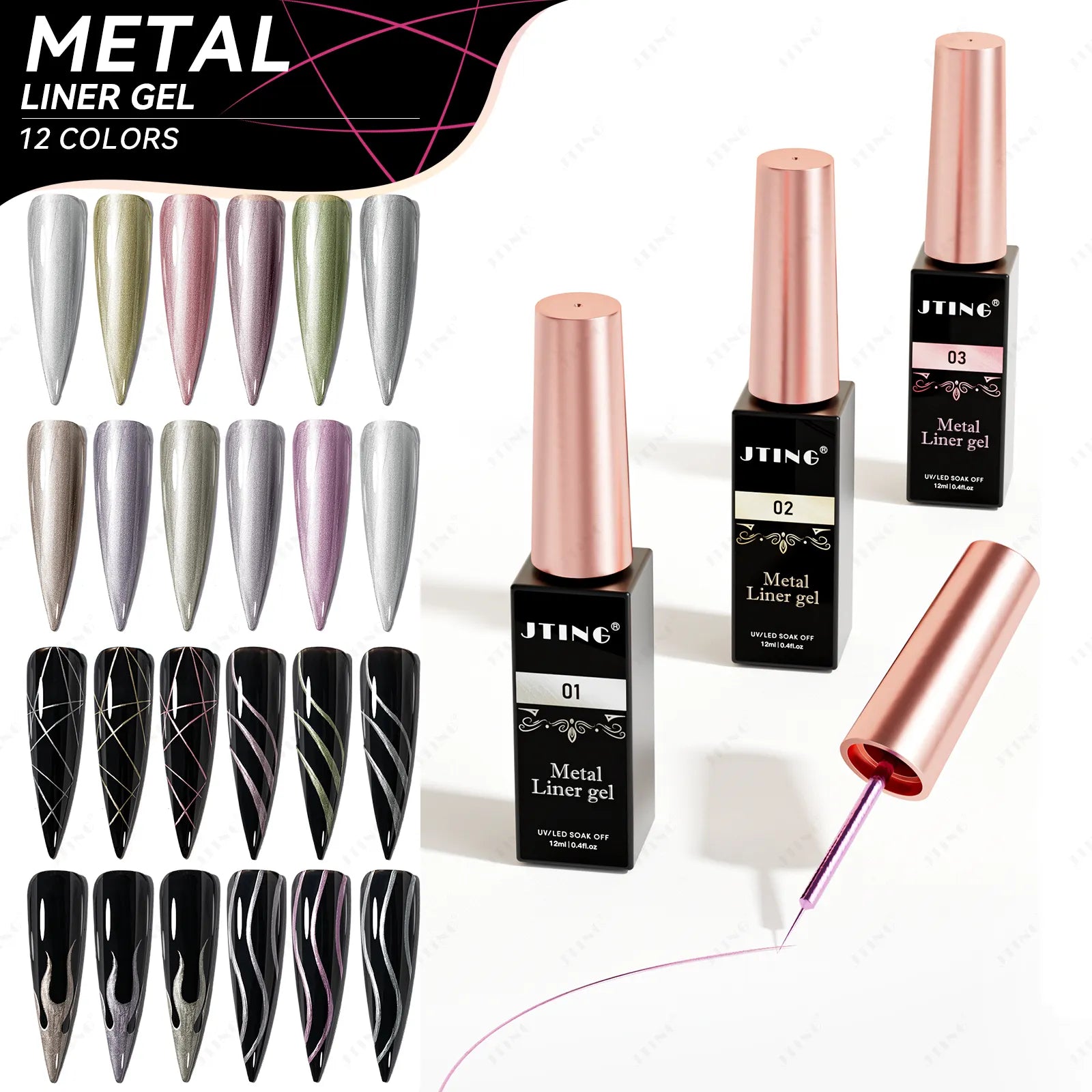 Liner Gel farger 12 serie Metal – Metallisk Nail Art Design